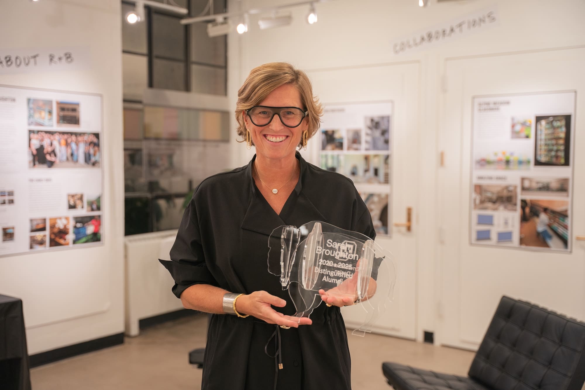 This prestigious recognition is presented to alumni who have demonstrated exemplary leadership and made enduring contributions to the design profession. Sarah’s career reflects these values; anchored in thoughtful collaboration, design excellence, and a commitment to enhancing the human experience. Described as the “heart and soul” of R+B by her husband and co-founder John Rowland, Sarah’s leadership has guided the firm from its founding in 2003 to becoming a nationally recognized, award-winning design studio known for its convergent approach and commitment to excellence. “Sarah and I met 32 years ago upstairs on the second floor in our first design studio class. In 2003 we both founded Rowland+Broughton with the shared belief that design has the power to shape experiences and even more importantly, lives.” |